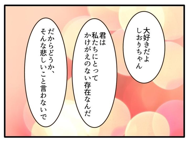 しおりが幼いころから、不倫相手との時間を最優先し、しおりをないがしろにしてきた母親。それでもしおりは母を嫌いになりきれずに生きてきました。しかしある日、母はしおりに保護者としてあるまじき発言をしました。あまりにショックを受けたしおりは家を出ていましたね。