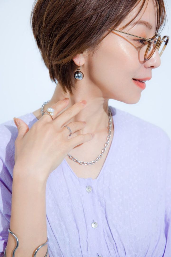 ピアス¥2,800ネックレス¥3,000バングル¥3,300※すべてサージカルステンレス(すべてセネ)パールリング[SV925]¥9,900(シトラリー)リング[SV925]¥4,500(owol.)ワンピース¥29,700(ヌキテパ/パサンド バイ ヌキテパ)バッグ¥78,800(カフネ)シューズ¥15,400(アシックス)メガネ¥39,600(ブラン)