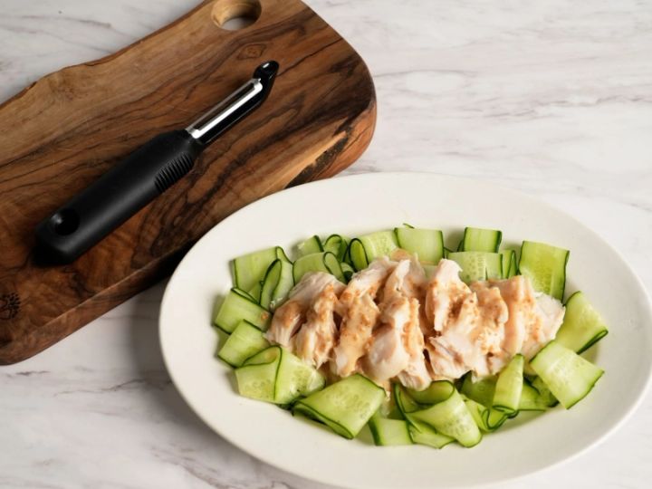 そして、食材への刃の当て方を角度で調整できるので、薄広幅のきゅうりもできちゃう!シェフみたいなピラピラのきゅうりで、我が家の棒棒鶏を簡単にアップデートできちゃいます。