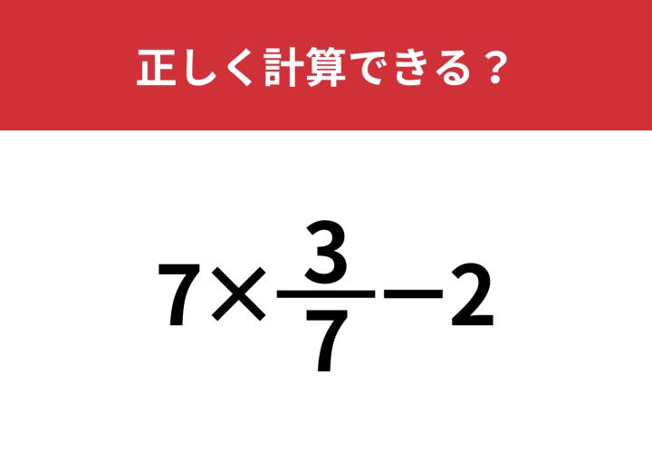 分数の計算って覚えてる?「7×3/7−2」正しく計算できる?