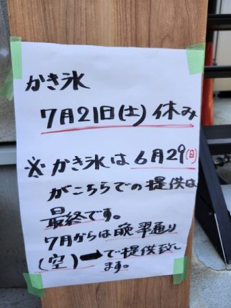 営業日・営業時間・かき氷以外の取り扱い商品はホームページ・Instagramにて要確認
