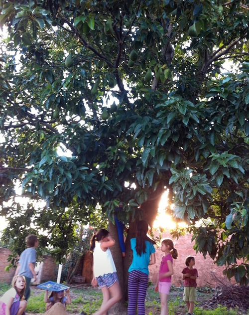 ブラジル在住時、我が家の庭で遊ぶ子どもたち。みんな違う国籍に年齢。混ざって遊ぶのがまた楽しい!