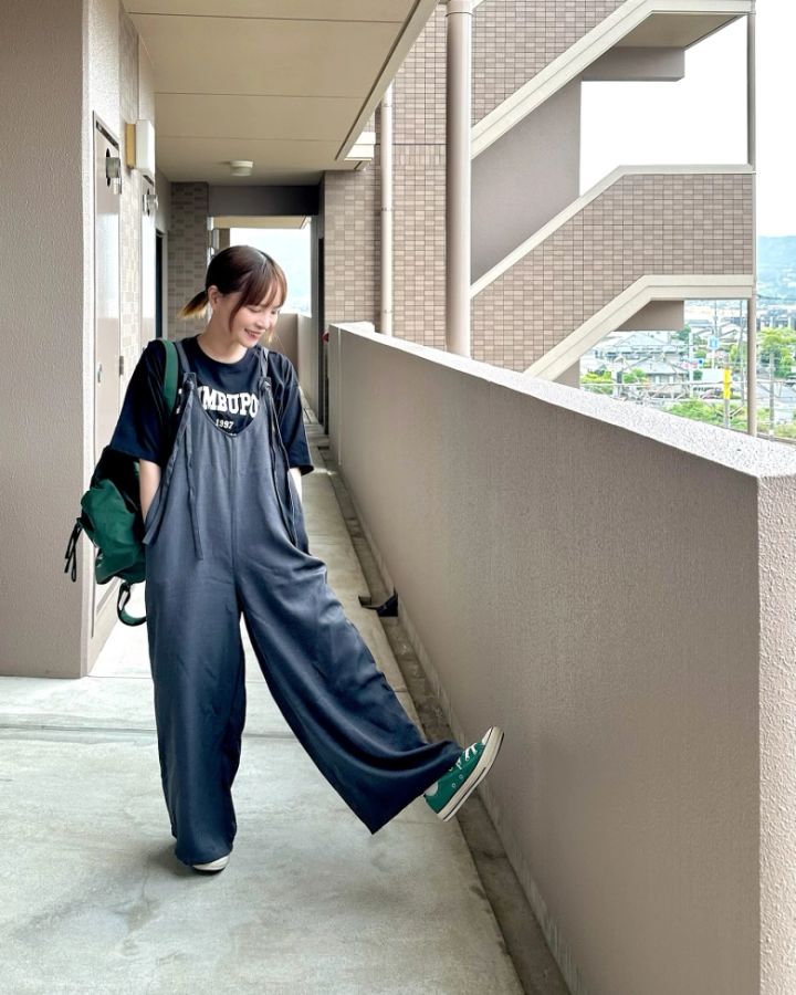 ゆるっとサロペットと合わせて休日のお出かけコーデに