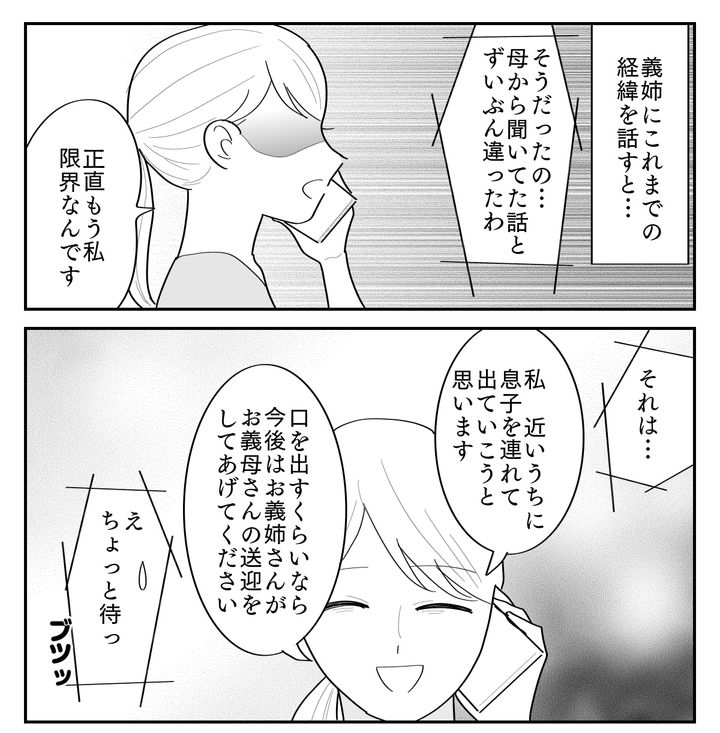<義母の送迎係ムリ>もう限界!「近いうちに家を出ていく」義姉に決意表明すると…?【まんが】