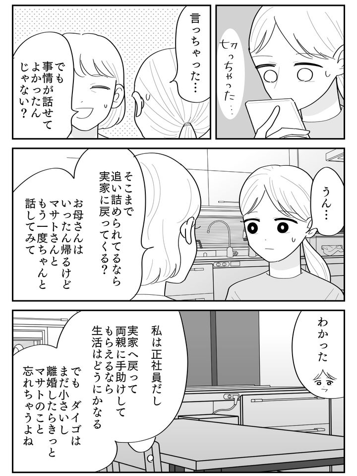 義姉からの連絡を受け、あらためて義母への怒りがこみ上げた私。これまでに受けてきた義母からの仕打ちを洗いざらい話し、「息子を連れて出ていく」と宣言して電話を切りました。それと同時に、私は自分のなかで離婚へと気持ちが傾いていることに気づいたのです。