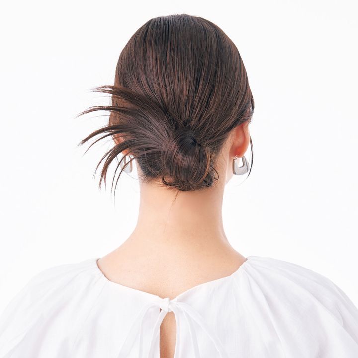 アホ毛、白髪の救世主バームもご紹介!雨の日頼れる“広がらないシニヨン”の作り方