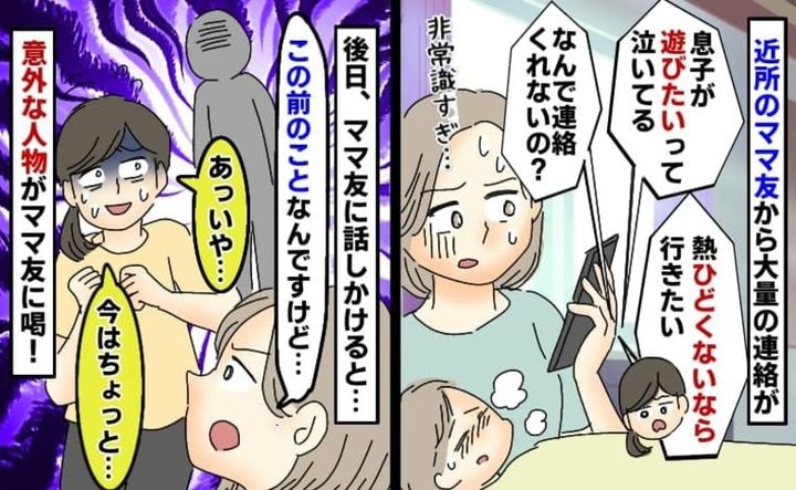 息子が高熱なのにうちで遊びたがるママ友。後日話しかけると様子が変…成敗してくれた意外な人物とは?