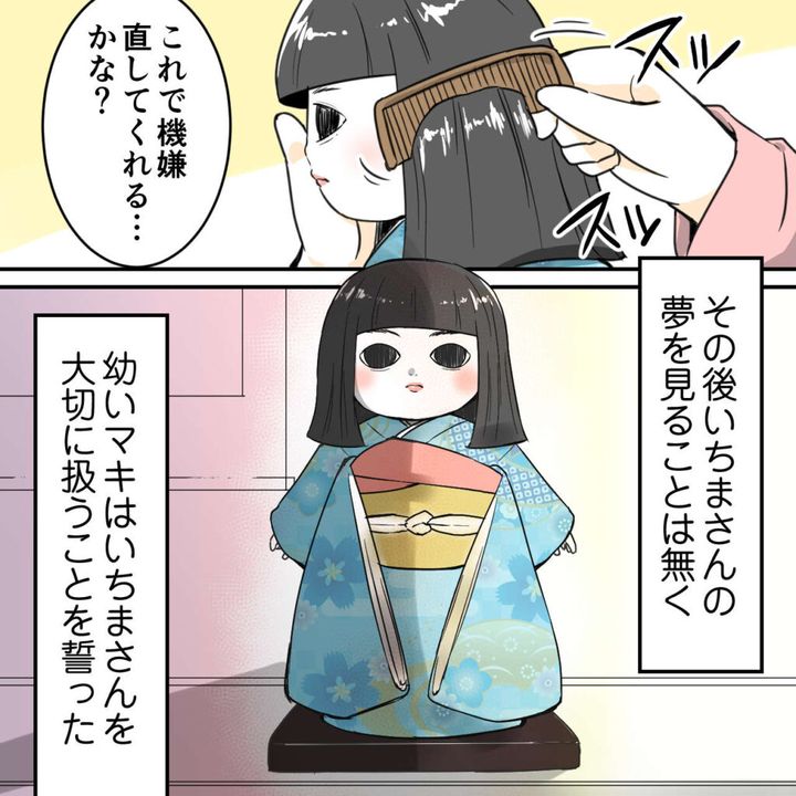 昔から大切にされている市松人形を雑に扱ってしまった罪悪感からなのか、本当にいちまさんの意思で夢に現れたのか・・・不思議ですね。そしてちょっと怖いです。