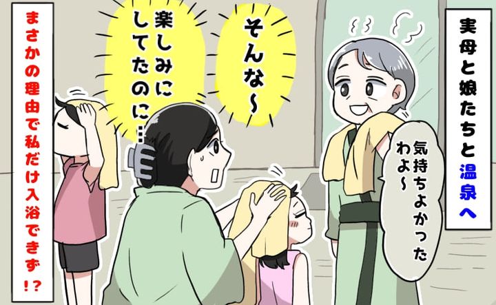 「楽しみにしてたのに…」実母と娘2人と温泉へ。まさかの理由で、私だけ入浴できず帰宅するハメに!?