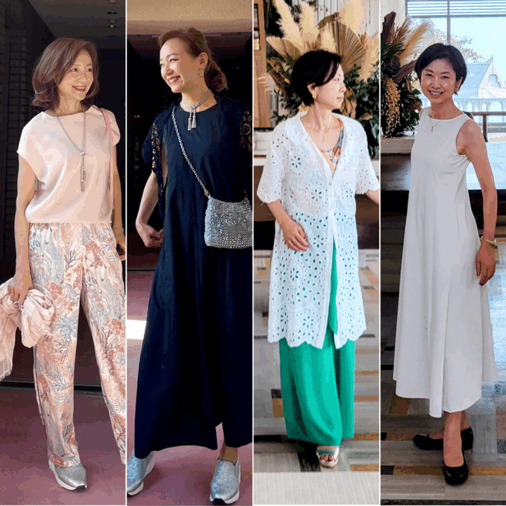 「イベントごとに参加するときのコーデ」「アクティブに活動する日の装い」「移動中の着こなし」を教えていただきました。快適さがありつつも、旅行先のウキウキ気分を盛り上げたり、現地で華やかで写真に写したときに映える着こなしにしているのがさすがです!