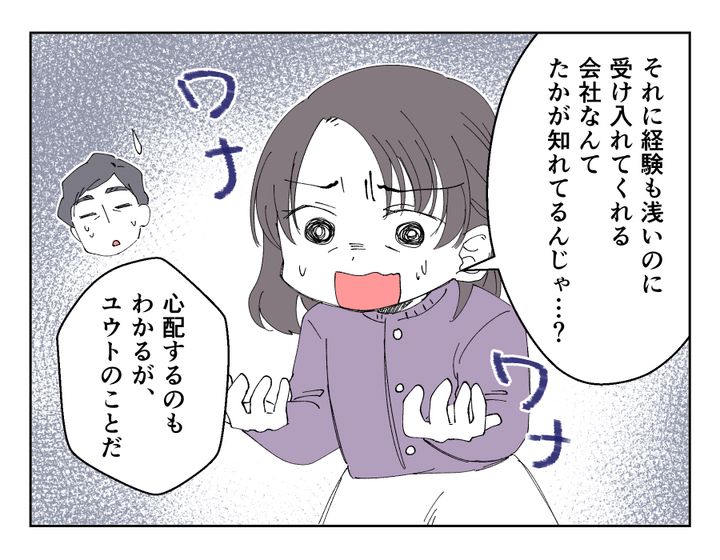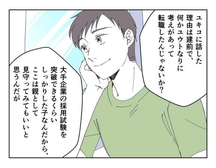 旦那さんは仕事が忙しく、残業や出張、単身赴任などユウトさんと一緒にいない期間も多かったのだとか。そのため子育てをしてきたのはほとんどユキコさん1人。実は大手企業に就職できたのも、ユウトさんに合いそうな企業を探したり、電話などで面接の練習に付き合ったり、ユキコさんのサポートあってのことだったそう。ユウトさんに誰よりも寄り添ってきたという自負があるからこそ、ユキコさんは旦那さんの「ユウトのことだから」を受け入れられなかったようです。