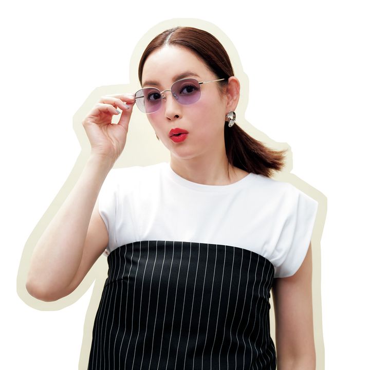 ブルーライトを約25%低減してくれるレンズ。さらに紫外線を99%カットし、くもり止め加工もされています。サングラス/ボストンコンビ¥1,990(UNIQLO)ニット¥33,000(ダブルスタンダードクロージング/フィルム)