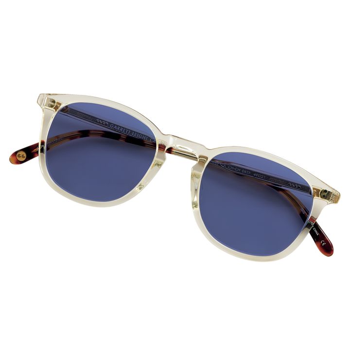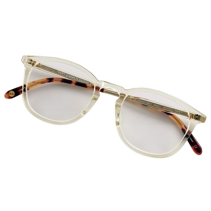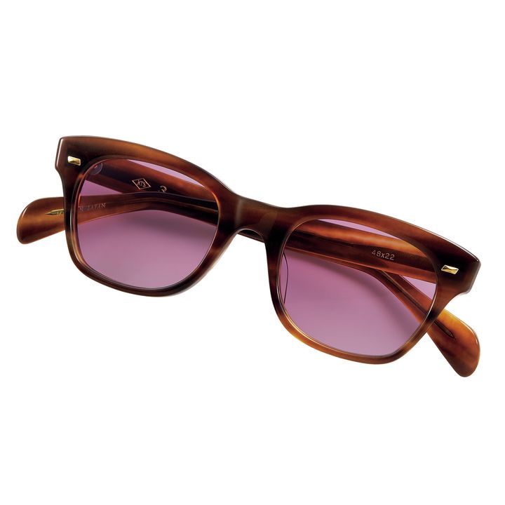 クリアフレームは旬っぽさを発揮。「SA Color Sensor」UV420カット調光レンズ(パープル)¥15,400クリアフレーム¥51,700[ギャレット ライト カリフォルニア オプティカル](ともにブリンク ベース)