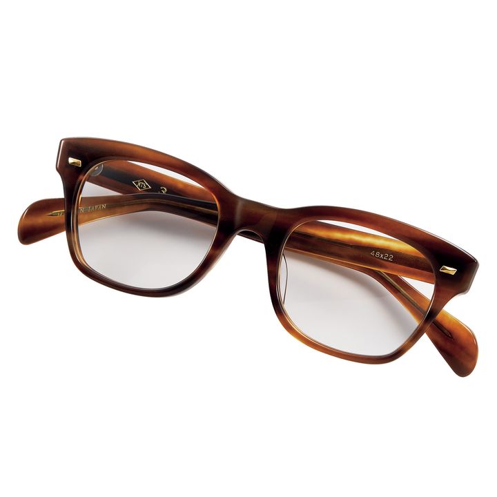 「SA Color Sensor」UV420カット調光レンズ(ブラウン)¥15,400ベージュフレーム¥57,200[ピーター アンド メイ](ともにブリンク ベース)シャツ¥37,400(ダブルスタンダードクロージング/フィルム)ピアス¥3,850(ヘンカ/ロードス)※調光+UV420カットレンズ「SA Color Sensor」はエスエイビジョン社製です。全6色展開。