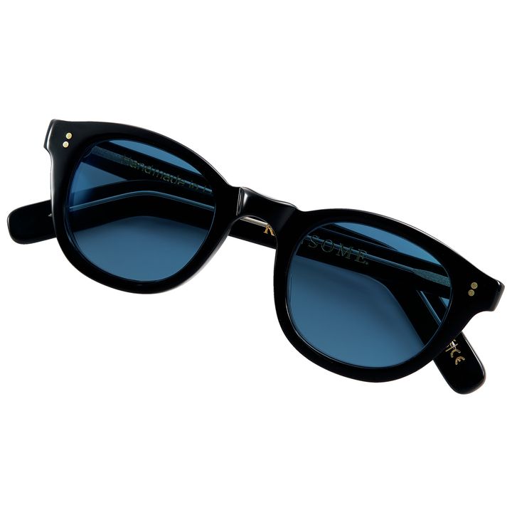 クールな印象に。「SA Color Sensor」UV420カット調光レンズ(ブルー)¥15,400ブラックフレーム¥77,000[ランサム オプティカル](ともにブリンク ベース)