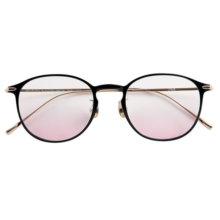レンズの下部分に色がついている設計。年齢を重ねると伸びてくる中顔面が短く見える効果も。フレーム¥13,900レンズ¥3,300(ともにJINS/JINS カスタマーサポートセンター)