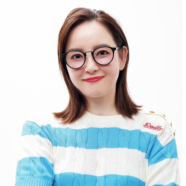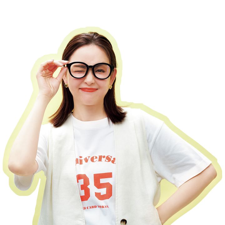 近くを見るときにぼやける方に。ブルーライトを約33%カットしてくれるのも嬉しいポイント。フレーム¥9,900レンズ¥3,300(ともにゾフ/ゾフ カスタマーサポート)