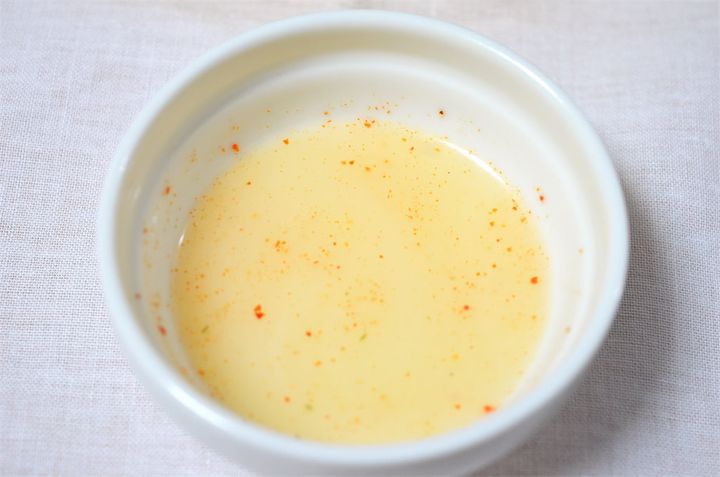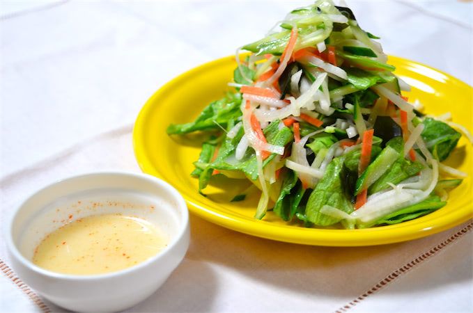 これが噂のマヨネーズとお酢で作ったドレッシング…。確かに、マヨネーズは入っているものの、見た目には油っぽくないですね。