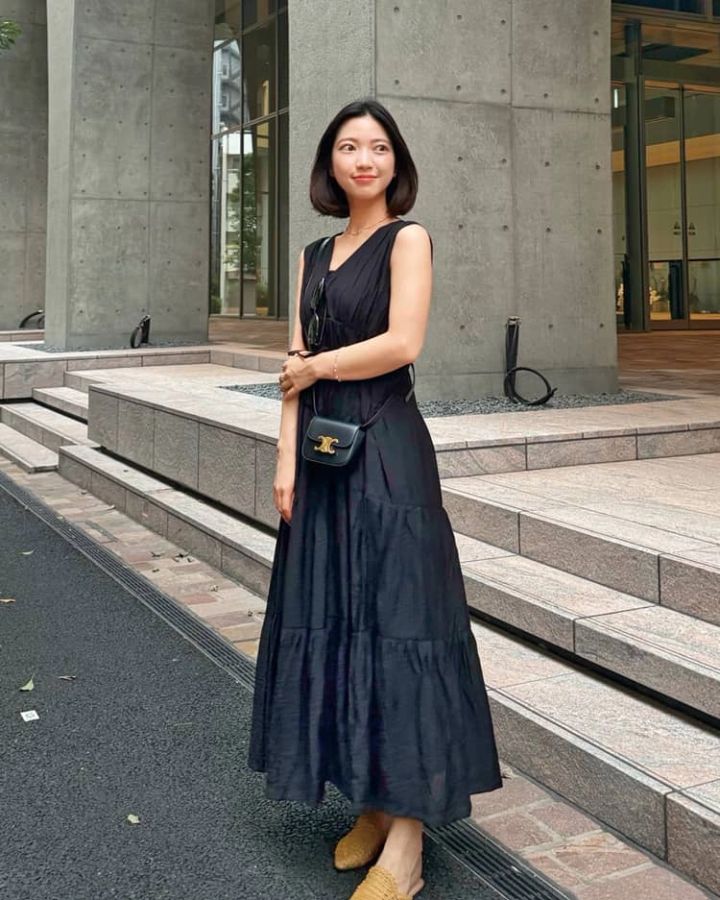 ドレスアップしていきたいディナーにおすすめです。丈が長めなので、足元はきゃしゃなストラップサンダルをあわせて、オトナめなコーデに