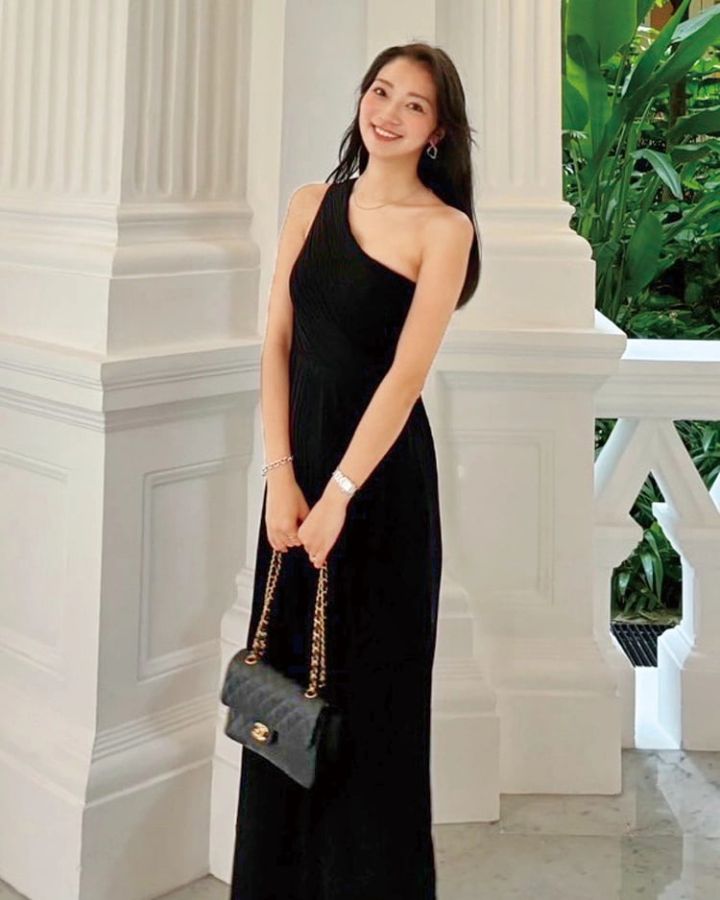 ワンショルダーに、ブラックのワンカラーが高級感をプラスしてくれるから、彼とのリゾート旅行にぴったり。