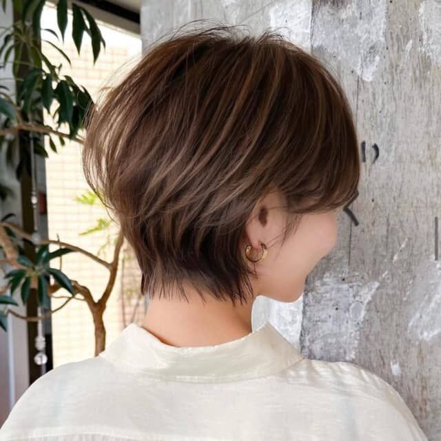 レイヤーショートヘアの最大の魅力は、360度どこから見ても美しいフォルム。特に後頭部に自然な丸みを出すことで、絶壁をカバーし、奥行きを演出できます。
