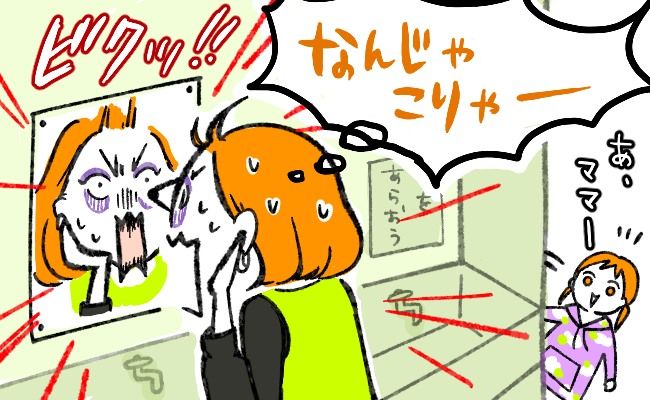 「なんじゃこりゃ!?」娘の授業参観で学校へ。鏡を見て、自分の顔に思わずギョッとしたワケは