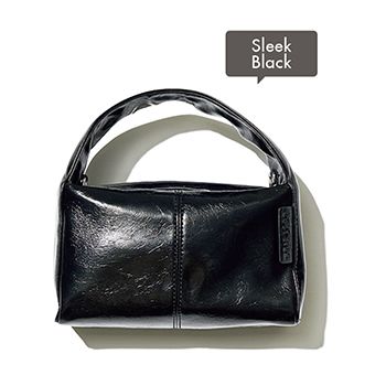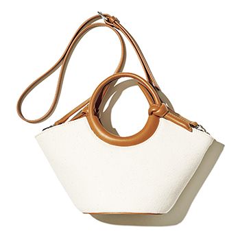 ルーズな服装の引き締めや、コンサバ感の軽減など、スタイリングの調整役として活躍するミニバッグ。難点と思われがちな収納力の低さを感じさせない“マチのある形”に注目。