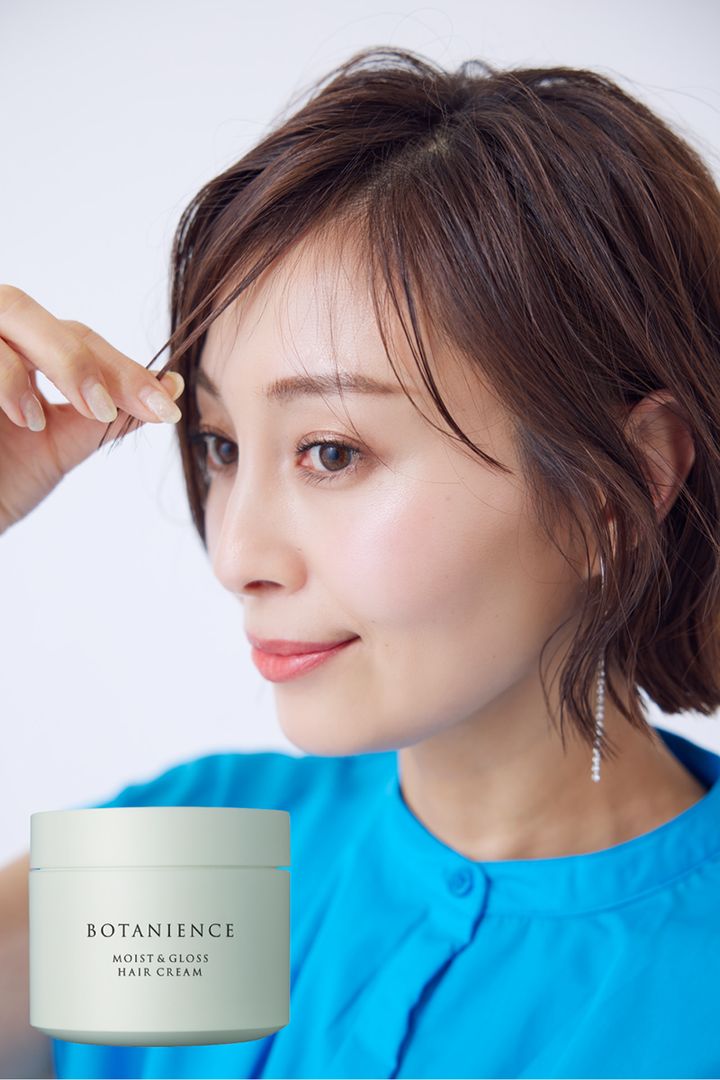 うねりを抑え、髪を保護・補修する成分をはじめ、潤いを与え、きれいに整える成分をイン。ボタニエンス モイスト&グロス ヘアクリーム 100g ¥3,080/サンコール(TEL 0120-656-356)