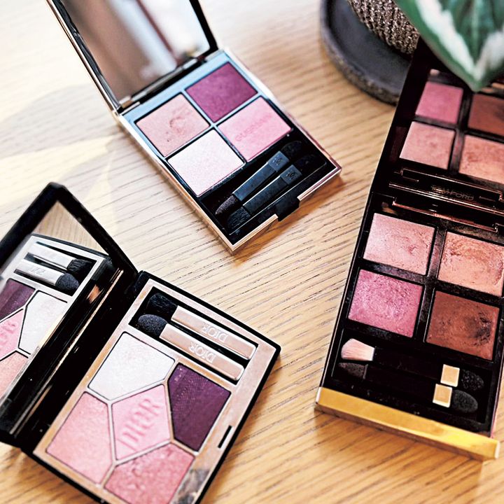ディナーはトム フォード アイ カラー クォード 42A。撮影の日はゲラン オンブル ジェ 530。女子会はディオールショウ サンク クルール 983。シーン別にチョイス。
