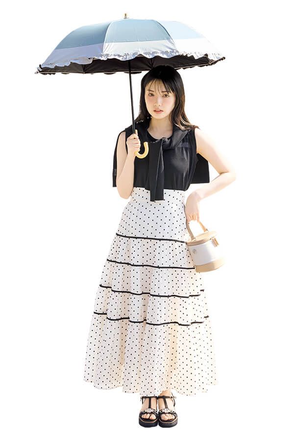高見え必至!バイカラーの日傘×モノトーンコーデで夏ムードたっぷりに♡