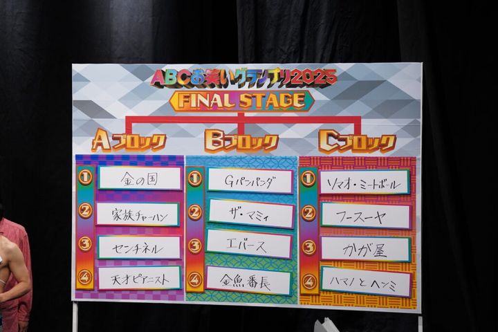 結果は、Aブロック=金の国、家族チャーハン、センチネル、天才ピアニスト。Bブロック=Gパンパンダ、ザ・マミィ、エバース、金魚番長。Cブロック=ソマオ・ミートボール、フースーヤ、かが屋、ハマノとヘンミ(出番順)となった。