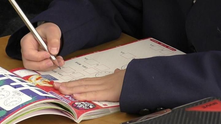 大好きなポケモンがあしらわれた算数のドリルを使い、勉強していました。