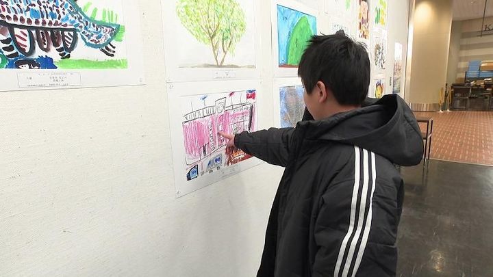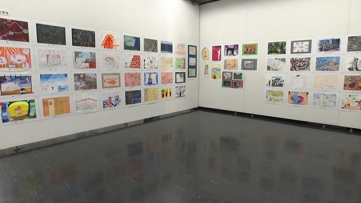 絵や粘土細工など、美術の授業で作った、自慢の作品が並びます。