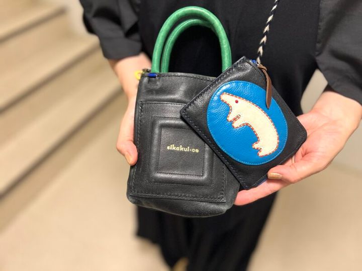 バッグどカードケースは、どちらも林さんの推しクリエイター「sikakui-co(シカクイコ)」の革小物。抜群の発想力とデザインセンスで、注目される京都のクラフトクリエイター。「ご自身の内面に存在する物語の世界観をもとに、作品を制作されているそうで、私には、どの作品もツボなんです」。