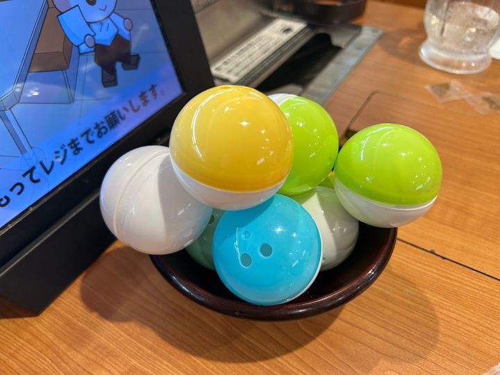 ビッくらポン!は、1回の食事で1つゲットできるか否かくらいの確率だと思っていたのですが、今回なんと2人で10個もゲットしました♡