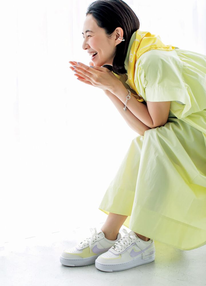 スニーカー[4cm/エアフォース1シャドウ]¥19,800/ナイキ スポーツウェア(ナイキ カスタマーサービス)、ワンピース¥57,200/ネル(シップス インフォメーションセン