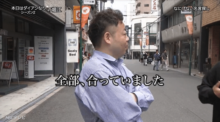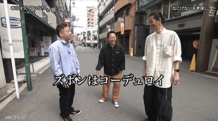 それを見ていたおしゃれなショップ店員さんに「津田さんのシャツとユースケさんのパンツが黒でリンクしていて相性がいいですね」と褒められた津田は満足げ。その言葉を聞いたユースケは「自信を持って歩いても大丈夫?」とおしゃれな街・堀江を歩く自信が湧いてくる。