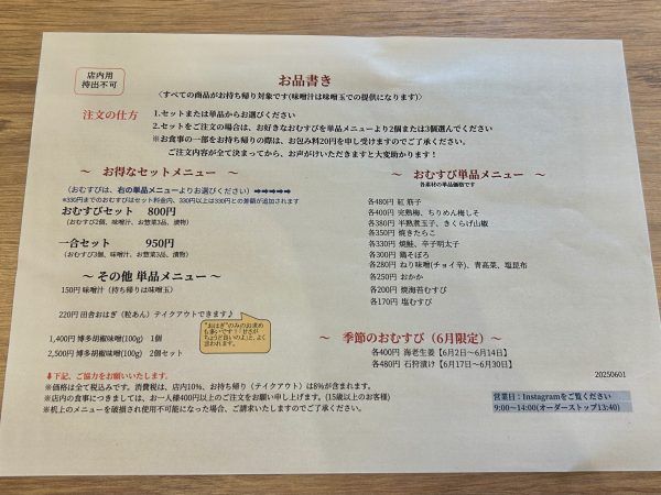平山さんご夫妻はもともと食品メーカーの社員だったそうですが、やってみたかったことを模索していたところ、知り合いの方から「おむすび屋さんはどうか?」とアドバイスがあったことや、生産者関係の知り合いの方との繋がりで、おむすびの材料が揃ったことなどからおむすび屋さんを開くことに。 当時、福岡にはおむすび屋さんがあまりなかったため、家族で東京に行き、有名なお店を巡っておむすびを食べたり、動画などでお店のレイアウトや販売の仕方などを自分達で勉強して、2019年10月にお店をオープン。