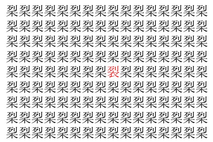 【脳トレ】「𥞥」の中に紛れて1つ違う文字がある!?あなたは何秒で探し出せるかな??【違う文字を探せ!】