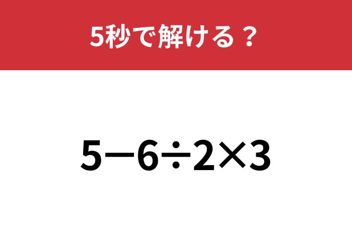 この問題は解けないと恥ずかしい!?「5−6÷2×3」5秒で解ける?