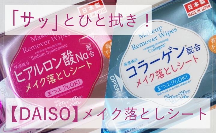 今回は、ダイソーの「メイク落としシート(ヒアルロン酸、35枚)」と「メイク落としシート(コラーゲン、35枚)」を紹介しました。ベースメイク、リップティント、アイシャドウに関しては力を入れずに簡単にメイクを落としてくれる感じがしました!