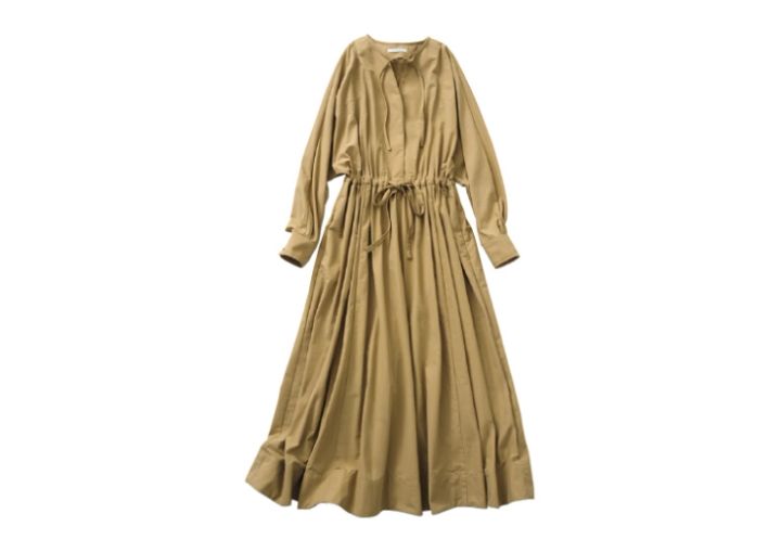シミになりにくいから丈長でも安心。撥水タックワンピ¥7,148/グローブ(ワールド)