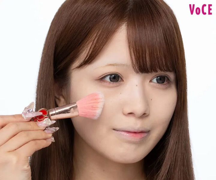 上から、チークをいれた部分にふんわりと重ねるように、いちごピンクカラーのツヤが可愛いハイライトをオン。顔を揺らすとピンクの輝きがきらめいて、思わず守ってあげたくなるような愛らしさを感じる、キュートなほっぺに♡