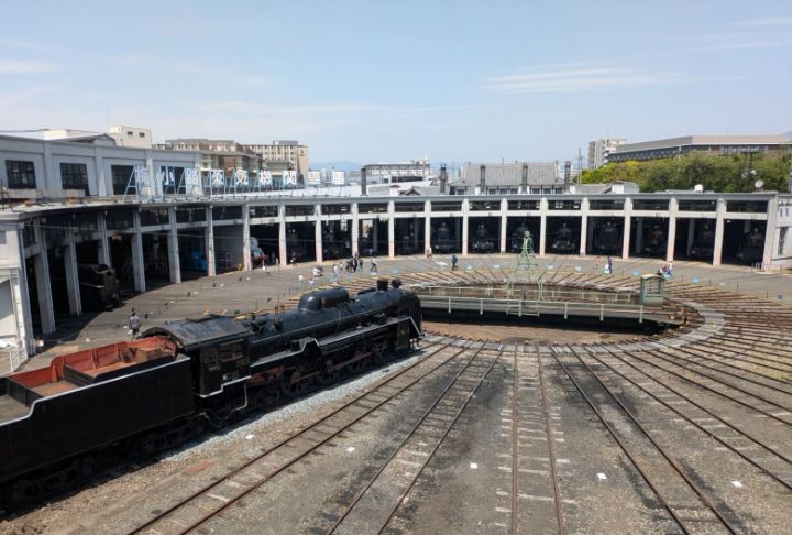 京都鉄道博物館の前身は梅小路蒸気機関車館という蒸気機関車専門の鉄道博物館。その頃から人気だったのが扇形車庫だそう。今も20両の蒸気機関車が保持・展示されていて、運転席など車両の中に入ることもできます。