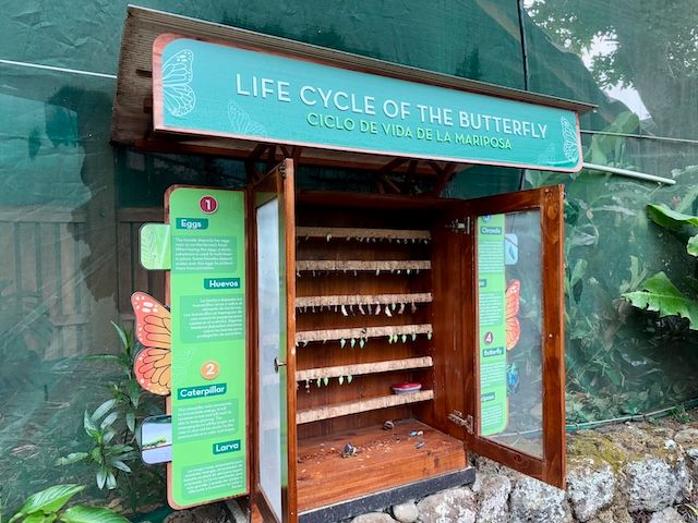 また、敷地内にはコスタリカで人気の蝶を見る体験も可能。無料の蝶の展示エリアもあり、ネイチャーツアーに参加しない人でも、コーヒーツアーの傍で、カラフルな南国の蝶を間近で観察できます。このようにここは、首都サンホセから近いのに、コスタリカらしさを1つの場所で感じることができるので、半日観光や乗り継ぎの合間に立ち寄る旅行者にも人気です。