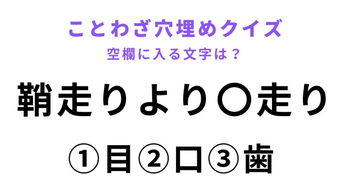 「鞘走りより〇走り」の空欄に文字を入れると、あることわざが完成します。
