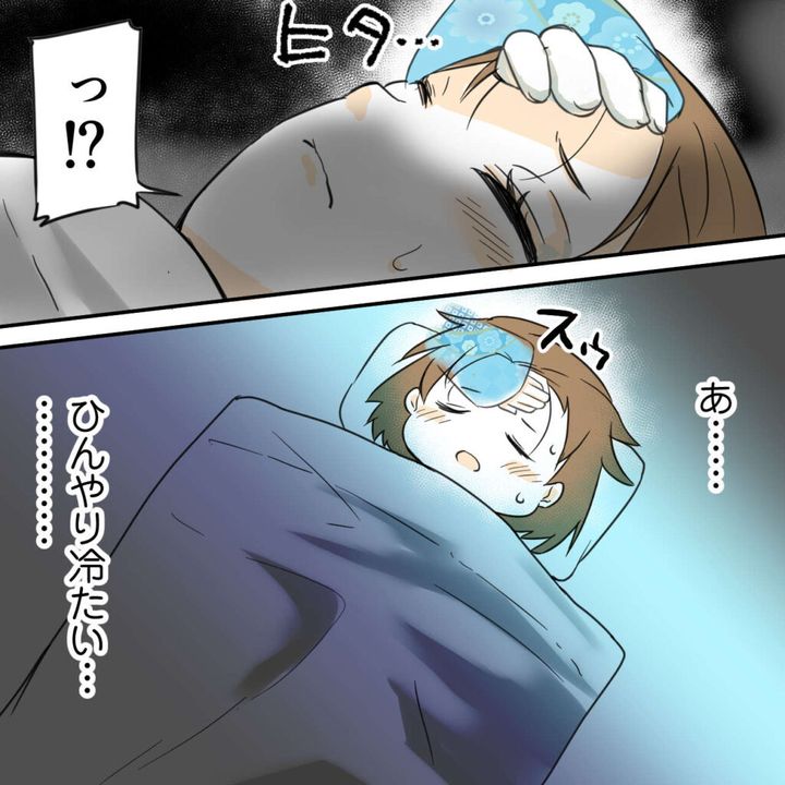 すると、突然おでこに何かが・・「っ!?」何かはわかりませんでしたが、ひんやり冷たいものがおでこにあてられていて、私はそのまま眠ってしまいました。