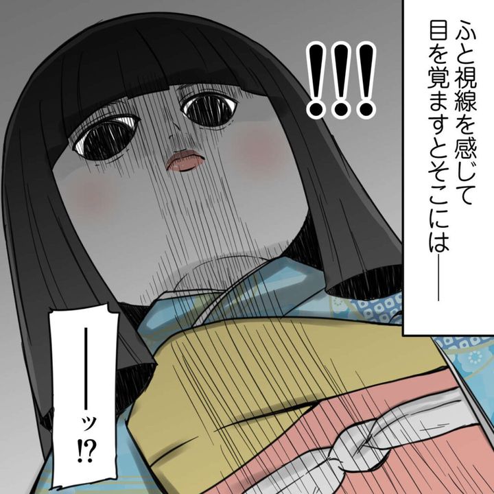 3. 「怖い怖い」風邪を引いて寝込んでいたらじっと上から見下ろされた。うちの市松人形が見てる|ママ広場マンガ