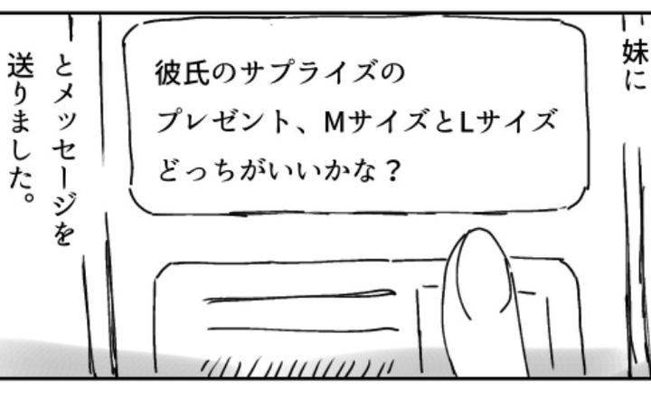 すると数分後、なぜか彼から「うーん、Lサイズがいいかな」との返信が。なんと私は、妹と間違えて彼にメッセージを送信してしまっていたのです。