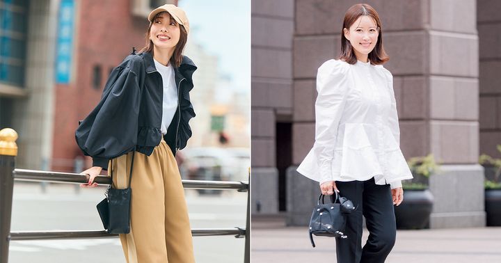 日頃子育てに追われているからこそ、着るだけで華やぐパフスリーブのトップスが目に留まりました。黒ワイドパンツを合わせて全体をモードに見せました。